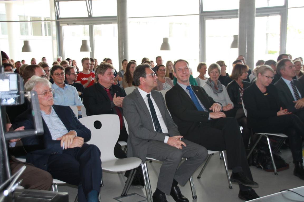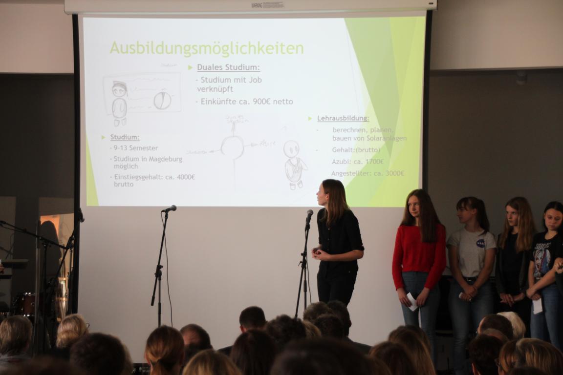 Am Montag, den 21.10.2019 fand bei uns der Europaschule Gymnasium Gommern die feierliche Eröffnung des neuen Anbaus statt. Im Rahmen einer kleinen feierlichen Eröffnung, welche im Verlauf viele Danksagungen, Blicke auf das Vergangene und die Zukunft sowie einige Wünsche für das Leben in der Schule beinhaltete, konnten wir den Anbau offiziell übernehmen. Neben den Reden einiger Akteure, stellte eine kleine Schülergruppe ihre Ergebnisse aus einer Projektwoche vor, bei der sie nicht den Anwesenden erklärt haben, welche Vorteile eine eigene Solaranlage auf dem Dach des EGG hätte. Nach dem förmlichen Teil, welcher durch den Chor, die Schulband und Johanna Heinemann musikalisch untermalt wurde, konnten sich interessierte Gäste die neuen Räumlichkeiten ansehen. Auf eigene Faust oder geleitet durch Schüler unserer Schule entdeckten sie die moderne und helle Räume, gut durchdachte Planungen und neben dem großen Speiseraum (der bereits für den offiziellen Teil als Veranstaltungsraum genutzt wurde), eine großzüge Oberstufenlounge sowie das neue großzügige Lehrerzimmer. Gerade ehemalige Kollegen und Gäste, die das alte Lehrerzimmer kennengelernt hatten, freuten sich besonders für das Kollegium – wenn man bedenkt wie beengt man vorher in einem Raum, welches sich vermutlich nicht Lehrerzimmer nennen durfte, gearbeitet hat.